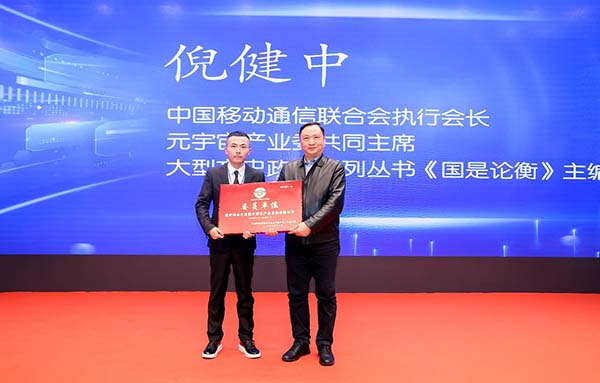 在热血沸腾的气氛中发布会迎来了重要时刻,中国移动通信联合会执行会长、元宇宙产业委共同主席倪健中先生为神由之星公司颁发中国移动通信联合会元宇宙产业工作委员会入会证书,共筑“元宇宙共识圈”,共同为元宇宙事业的繁荣发展贡献力量。