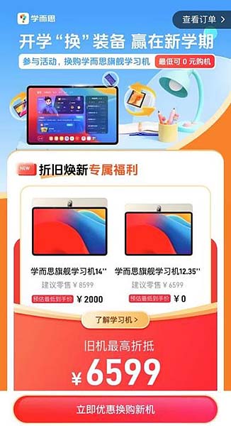 幸运的是,在与家长们的闲聊中,我偶然得知了学而思旗舰学习机的存在。它不仅功能强大,而且正在进行的折旧焕新活动更是让我心动不已。与转转这个二手平台相比,它提供的换新方案无疑更为实惠,计算下来优惠十分让人动心。