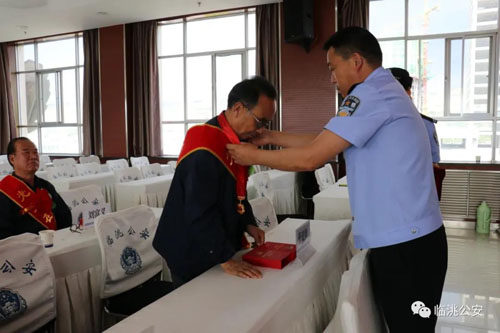 在家局党委班子成员、各所队室负责人参加了颁发仪式。