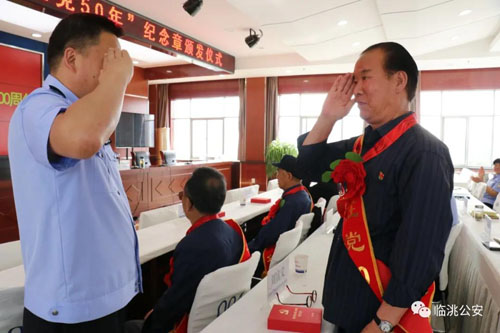 兰建伟同志在总结讲话中表示,党中央颁发“光荣在党50年”纪念章,既是向老党员们致敬,增强老党员们的荣誉感、归属感,更是对年轻党员的激励,是一次精神洗礼。在今后的工作中,全局党员民警要向老党员们学习,学习他们对党忠诚的政治品格,学习他们无私奉献的优良作风、学习他们人民至上的红色基因,学习他们艰苦奋斗的赤诚情怀,学习他们恪尽职守的职业精神,并把学习成果转化到实际工作中,为建设平安临洮贡献自己应有的力量,以优异成绩迎接建党100周年。