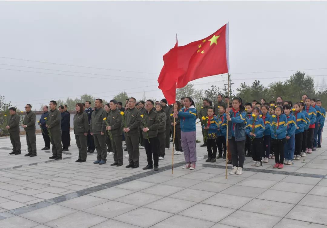 在庄严肃穆的陵园广场,参加祭奠仪式的党员干部整齐列队,唱响国歌、集体默哀,并向革命烈士敬献花篮,在场人员依次将鲜花摆放在纪念碑前,向革命烈士致以崇高的敬意和无限的敬仰。
