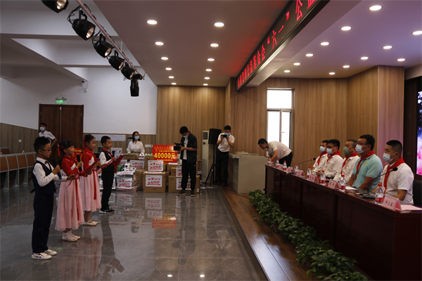 仪式接近尾声时,逸夫小学的同学们为爱心企业献上了精彩的节目,并向爱心企业代表佩戴了红领巾,郑二英校长对爱心企业表示感谢,同时也表示,孩子们在爱心企业的关爱下,一定能健康幸福成长,同时也希望能深化共识,加强合作,促进产教融合,实现优质资源互补,为社会做出更大贡献。(韩宝卫)