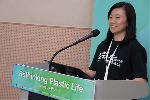 随着INC-5会议于25日正式启动,本轮谈判的成果将直接影响“全球塑料条约”能否顺利达成。塑料污染治理是全球性挑战,唯有多方协作才能实现突破。各方的经验教训与创新方案,不仅为谈判提供了实践参考与决策支持,也为推动地方、区域及全球治理行动注入了动力。因此,谈判开始的第二天,相关中国民间组织围绕“地方行动,全球影响:中国社会组织应对塑料污染的解决方案和经验”主题,在大会官方边会室组织了案例分享活动。中华环保联合会国际部副部长倪垚、SEE基金会气候变化与商业可持续项目总监卢之遥、深圳零废弃理事长毛达、太平洋环境重庆代表处首席代表邓萍、世界自然基金会北京代表处可持续蓝色经济高级项目官员金诚诚分别围绕联合倡议、公众倡导、电商去毒、新塑料污染、塑料公约必要事项等内容进行了分享,并与各国来宾进行了互动交流。