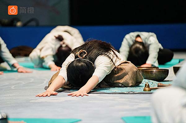“在‘舞韵瑜伽’环节,我第一次感受到身体与音乐的共舞。”活动现场,72岁的陈红女士(化名)分享道。作为简橙养生瑜伽最年长的学员,她坦言起初对“古典舞+瑜伽”的结合心存疑虑,但跟随王蕊老师完成一组动作后,她发现“肢体延展的节奏竟与呼吸如此契合,通过延展收缩的体式,舒缓了僵化的肩颈、腰部,也增强肌肉柔韧性及关节灵活性,仿佛每一步都在与千年前的东方智慧对话”。