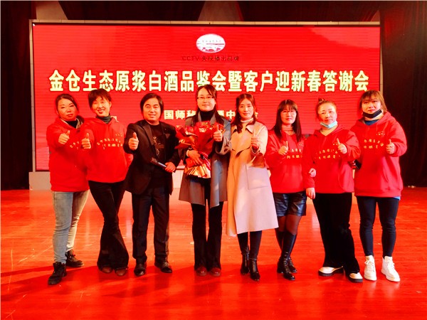 程水龙、徐红华以及客户代表依次上台,预祝此次品鉴会暨答谢会取得圆满成功。程水龙说,自金仓生态原浆白酒登陆江西尤其是鄱阳大地以来,金仓白酒江西省总代理吴丽玲与合作伙伴陈敏红一道,在金仓白酒销售行业上兢兢业业、辛勤耕耘,发扬了特别能吃苦、特别能战斗的精神,表现出高昂的斗志和极大的工作热情,体现了良好的企业家风貌,在2021年里取得了令人瞩目的非凡业绩,得到了金仓白酒全国总部的高度肯定,金仓白酒也在鄱阳老百姓中获得了良好的口碑,品牌得到迅速提升,市场得到了极大的拓展。作为湖城商会·鄱阳镇商会负责人,近年来,我喜悦地看到各位会员单位正在快速成长。商会将在新的一年里,竭尽全力,与各位会员单位携手并进,助力各位会员单位加快发展,提高企业竞争力和品牌竞争力。