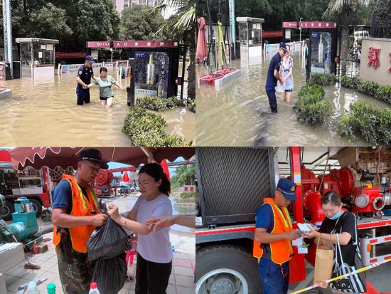 7月24日上午10时,刚刚抵达郑州市的增援队伍就在前方指挥部那领到了一个艰巨的任务,前往郑州市白沙镇郑东新世界小区进行排涝工作,该小区地势低、住户多、积水深,同时四周的积水还在不断涌入,虽然暂时没有较大降雨但水位还在不断上涨。消防指战员顾不上休整就立即赶赴现场利用大型远程供水车开展排涝工作,同时涉水为小区内饮食紧缺的居民紧急运送物资。后续协调社区和物业组织了18台抽水泵组将地下车库和地下室积水抽到地面,再由咸宁市消防救援支队援豫增援队远程供水系统向外排出。