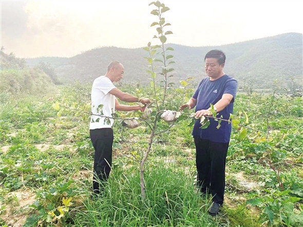 朱蝉良(右一)对果树进行压枝资料图
