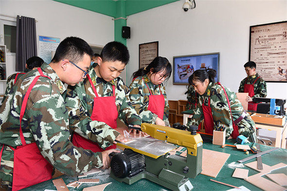 9月13日,在晋中市中小学生综合实践学校里,经纬中学初一年级学生在木工小作坊两两结对,认真研究制作实验模型。通过整个制作过程,同学们不断发现问题、解决问题,培养了大家认识世界和改造世界的思维模式。(杨洋 摄)