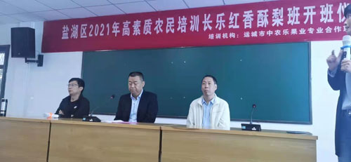 为扎实推进党史学习教育,强化落实“迎国庆 颂党恩”主题活动,切实发挥现代农业发展中心在促进农民持证就业创业中的引领服务作用,盐湖区现代农业发展中心主任董起宏、副主任张循兵以及农广校全体干部在西张耿基地亲自部署,亲自指挥举办农民高素质培训班,共有65名农户参加技能培训。本次培训由盐湖区8家培训机构和中农乐基地梨农参加,每期培训10天,培训合格后,由培训机构颁发结业证书。